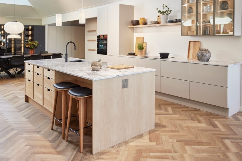 JKE har tagit fram lösningen på efterfrågan kring minimalistiska och handtagsfria luckor. Köksmodellen Nordic Modern är noga framtagen med vackra träkanter och infrästa handtag för att uppfylla alla behov.