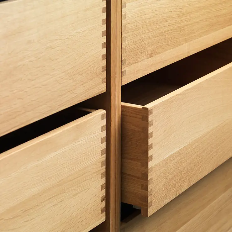 En signaturprodukt som är helt unik på marknaden är JKE:s sinfokade lådor i massivt trä. Lådorna är tillverkade i ekträ och med ett så noggrant hantverk att lådorna kan användas utan ytterligare front.