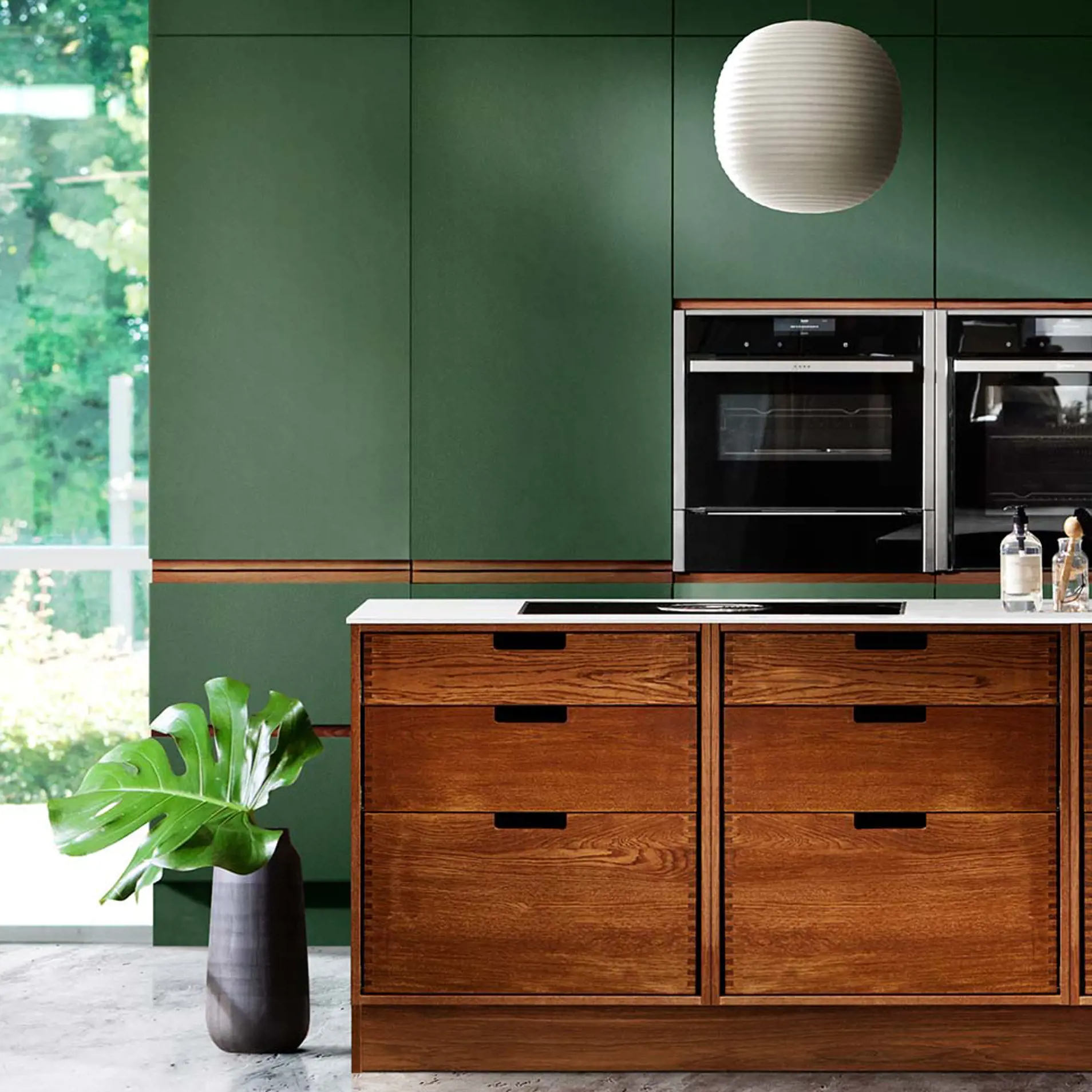 Allt vårt trä kommer från europeiska, hållbara skogsbruk. Träet i våra bänkskivor och lådor av massivt trä är certifierat. Vi har även fokus på andra hållbara material, som till exempel linoleum, vars naturliga ingredienser tar upp mer koldioxid än de släpper ifrån sig under produktionen.