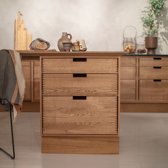 JKE:s köksöar i trä kännetecknas av genomtänkt design, noggrant utvalda material och stor flexibilitet. Oavsett om du söker en kompakt ö med mycket förvaring, eller en större modell med sittplatser, finns det många alternativ för att kunna anpassas till just din stil och dina behov.