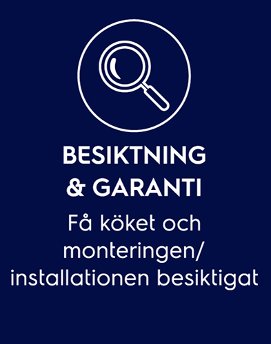 Om du använder vår installationsservice har du rätt till besiktning av köket, monteringen och installationen. Vi går noga igenom så att allt ser ut som det ska, att luckor och lådor är hela och fungerar. Efter cirka ett år gör vi vår årskontroll. Här kontaktar vi dig och stämmer av så att köket fungerar som det ska.
