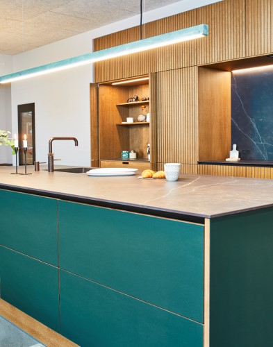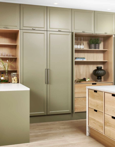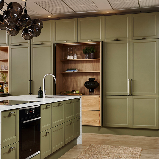 Grön färg är perfekt för dig som vill skapa en ombonad och hemtrevlig känsla i köket. Den gröna färgskalan utgör dessutom ett brett spektrum av fina nyanser som gör sig bra i såväl lantliga som moderna kök. Hos oss hittar du nyanser i ljusare pistagegrön, olivgrön eller mörkare toner såsom barrträdsgrön eller mossgrön. Blanda gärna med grått, beige eller andra naturnära färger för att förstärka den varma atmosfären, eller färgsätt ton-i-ton. Kombinera med andra naturnära material som en bänkskiva i trä eller mönstrad marmor så blir ditt gröna kök komplett.