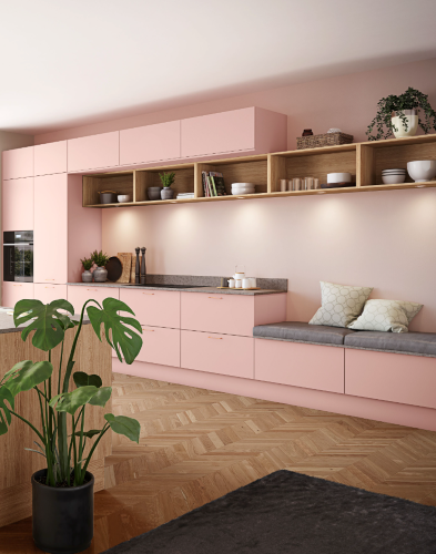 När allt fler vågar gå utanför sin comfort zone och välja färg efter eget tycke och smak kan vad som helst hända. Rosa är ett typexempel på en ovanlig kulör som förekommer allt oftare i våra kök. Det kan handla om allt från en skarpare Barbie-rosa till mer dämpade toner i aprikos-, korall- eller puderrosa, även om de sistnämnda nyanserna helt klart är vanligare. Färgen passar bra med nästan alla metaller och träslag, och blir en fin kontrast till färger i vitt, svart eller beige.