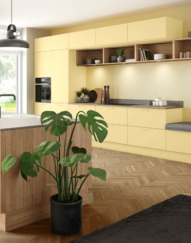 Det gula köket associeras ofta med 50-talets retrostil, en tid då pastellfärger började bli alltmer framträdande i de svenska hemmen. Idag syns den gula färgen både i lantliga och mer minimalistiska kök. Den pigga, gula kulören har en väldigt iögonfallande karaktär – vilket gör den till en bra kandidat för ett unikt kök. Som kontrast till den gula tonen funkar både svarta, vita eller andra ljusa färger och träslag.