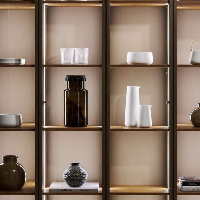 Vad underlättar bättre inredningsmässigt än en möbel som är både snygg och praktisk? Samtidigt som vitrinskåpet gifter sig väl med sin omgivning löser den många problem såsom förvaring och hjälper samtidigt till att skapa en atmosfär för rummet. Och vad kan vara viktigare än att skapa en atmosfär som inger en känsla av “hemma” när man stiger in i rummet? Ett vitrinskåp i glas är perfekt som dekorativ inredning och för att skapa ett hem med en personlig touch. Genom att placera minnen från resor, inredningsdetaljer, vardagsporslinet eller textilier och krukor bakom glaset ger man liv åt ett rum.