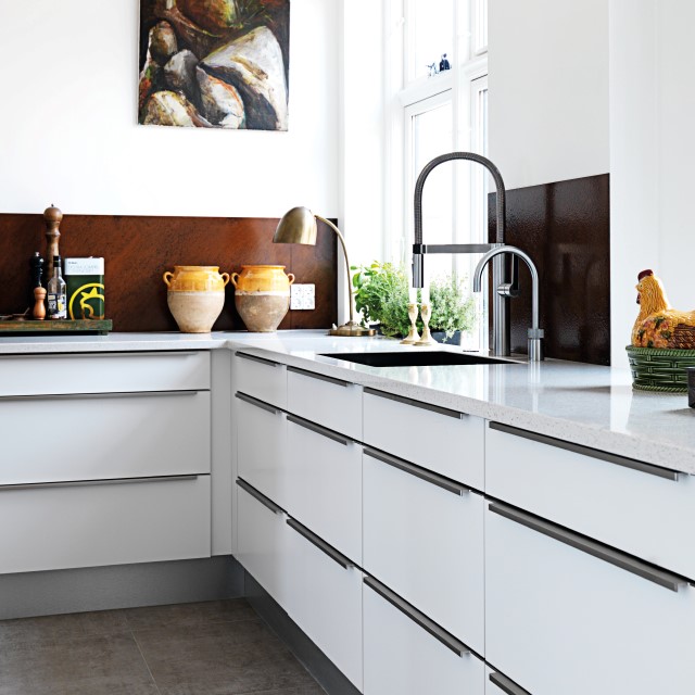 Med det sagt är inte mörka färger helt förbjudna. Satsa på att blanda in mörka färger som kontraster i ett i övrigt ljust kök. Kanske faller valet på svarta beslag mot ljusa köksluckor eller en stilren svart köksblandare mot vitt kakel.
