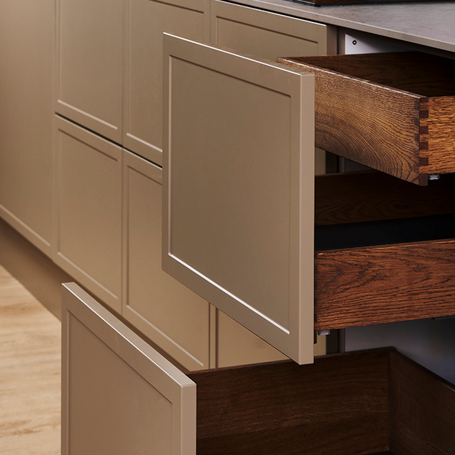 Köket har en vacker, matt yta som inger ett lugn och gör vardagen lite smidigare. Lacken är miljövänlig och den starkaste på marknaden, utan oro för missfärgning och små repor.