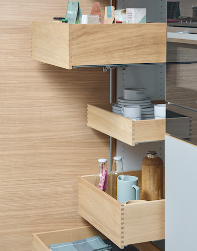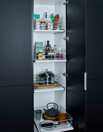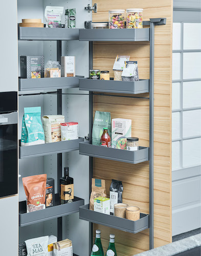 När du planerar ditt köks förvaring är det bra att även tänka på matens hållbarhet. Hur vill du förvara matvaror som inte behöver var i kylskåpet för att de ska få en så lång hållbarhet som möjligt? Att skapa lådor för frukt och grönt med smidigt utdragbart skydd inuti är ett bra tips på smart förvaring för ökad hållbarhet. Potatis och rotfrukter trivs exempelvis att ligga mörkt. Genom att skapa rymliga lådor med utdragbart skydd för dessa matvaror håller de längre och du kan minska matsvinnet.